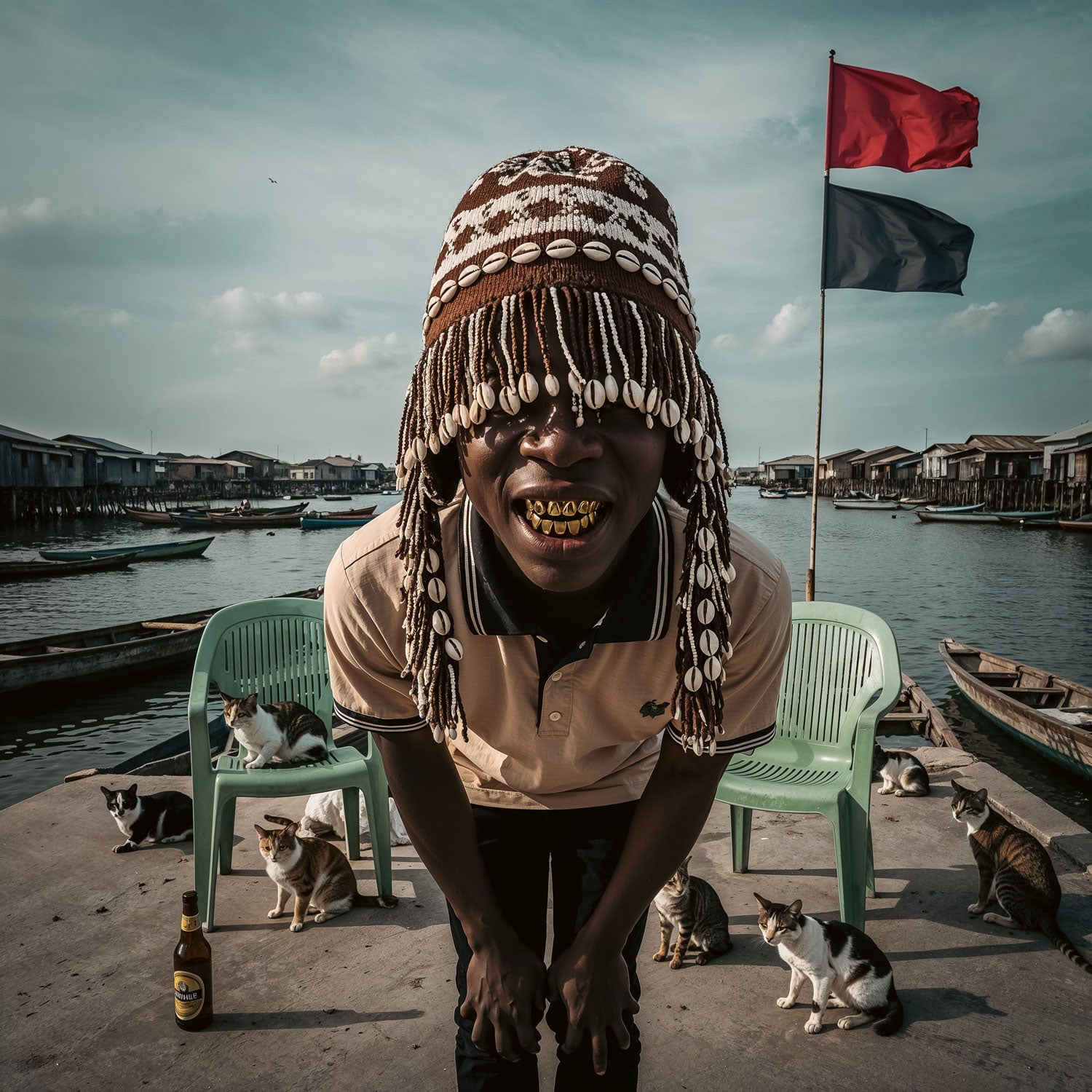 The scenery is reminiscent of the floating villages of West Africa, where people live on stilts, where water and land merge. No king in the traditional sense rules here – improvisation, humor, and spirit reign supreme. "Mfalme wa Pwani" is a symbol of a new dignity born of chaos, pride, and style.